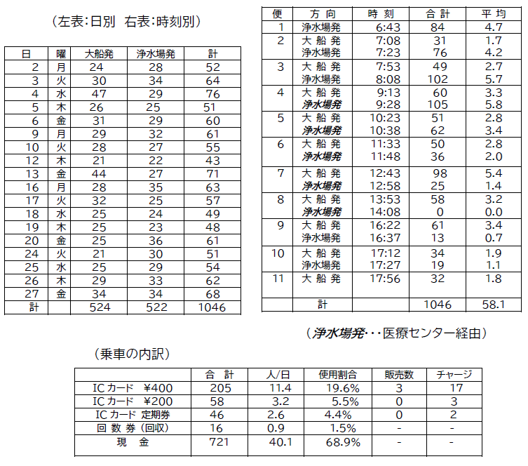 今月の運行日数は18日で合計人数は1046人でした。